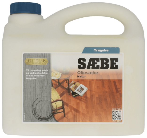 Trip Trap Oliesæbe Natur 2,5 L. Oliesæben giver et smukt og godt resultat. Sæben giver nemlig optimal pleje hvilket gør, at dine trægulvevil være smukke i meget lang tid.